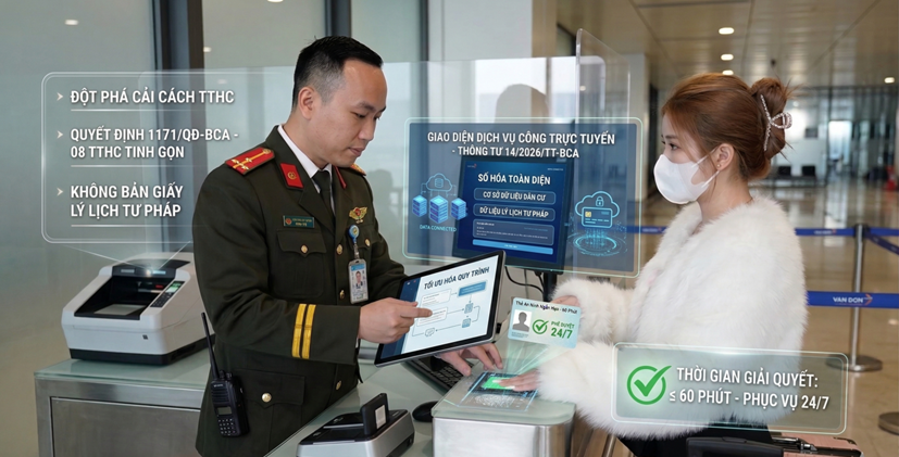 Trên cơ sở khung pháp lý của Thông tư số 14/2026/TT-BCA, Quyết định số 1171/QĐ-BCA đã cụ thể hóa 08 thủ tục hành chính được sửa đổi, bổ sung theo hướng tinh gọn, minh bạch. Một trong những thay đổi mang tính đột phá là cho phép các cơ quan, doanh nghiệp thực hiện nộp hồ sơ trực tuyến toàn trình trên môi trường điện tử. Việc kết nối dữ liệu dân cư giúp loại bỏ bản giấy lý lịch tư pháp, rút ngắn thời gian cấp thẻ an ninh hàng không xuống dưới 60 phút, phục vụ 24/7.