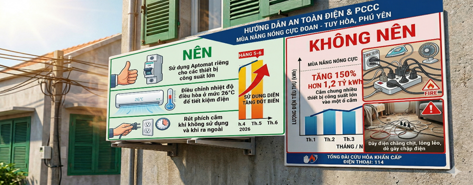 Trong những ngày gần đây, địa bàn tỉnh đang trải qua đợt nắng nóng kéo dài trên diện rộng, nền nhiệt liên tục duy trì ở mức cao, có thời điểm nhiệt độ ngoài trời vượt ngưỡng 45°C. Thời tiết khắc nghiệt khiến nhu cầu sử dụng các thiết bị điện phục vụ làm mát và sinh hoạt của người dân tăng mạnh. Tuy nhiên, đi cùng với sự tiện nghi đó là nguy cơ cháy nổ do quá tải hệ thống điện – một rủi ro tiềm ẩn có thể xảy ra bất cứ lúc nào nếu thiếu sự chủ động phòng ngừa.