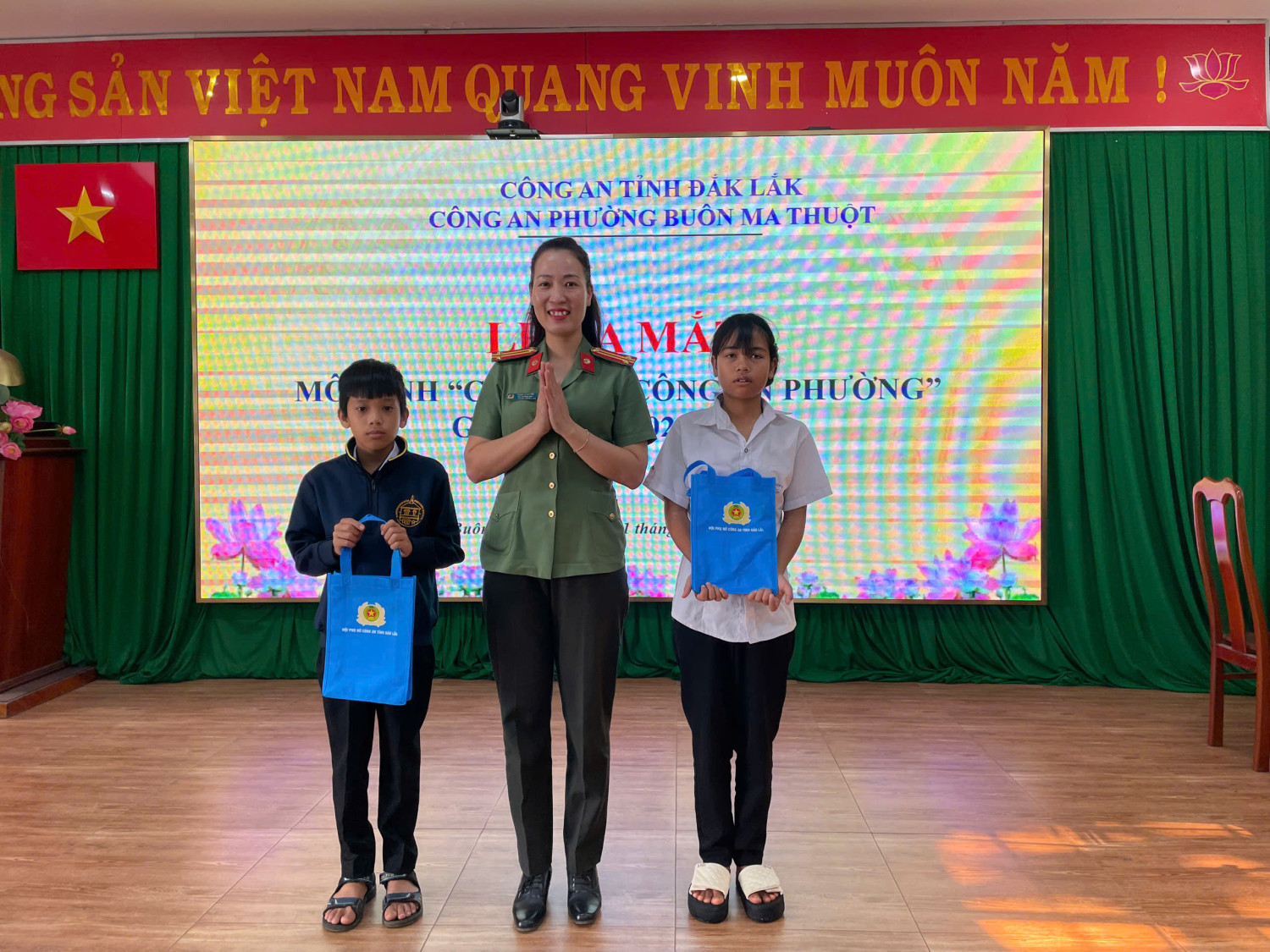 Trên cơ sở khảo sát thực tế, Công an phường đã phối hợp với các đơn vị tài trợ, nhà trường và ban tự quản tổ dân phố, buôn lựa chọn hai em có hoàn cảnh đặc biệt khó khăn là em Đinh Lê Khải Nguyên (sinh năm 2014, học sinh lớp 6, Trường THCS Hàm Nghi) và em H’ Hoan Êban (sinh năm 2012, học sinh lớp 8, Trường THCS Hàm Nghi) để nhận đỡ đầu. Cả hai em đều mồ côi, hiện sinh sống cùng ông bà lớn tuổi, điều kiện kinh tế gia đình còn nhiều khó khăn.