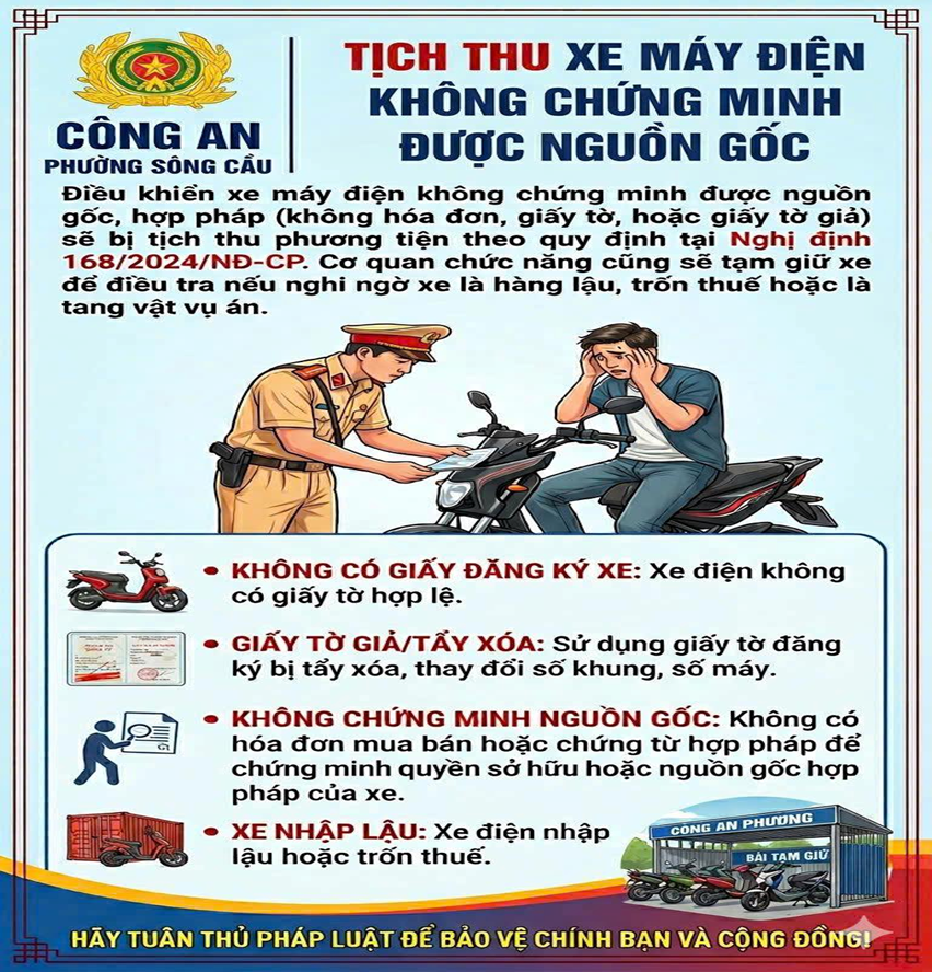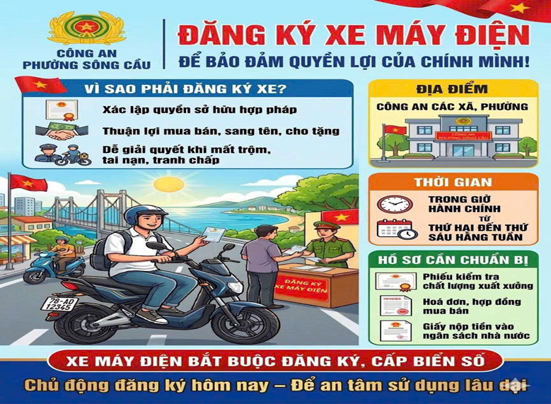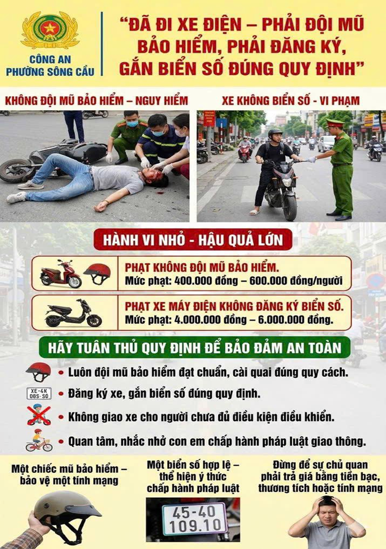 Thời gian qua, trên địa bàn phường Sông Cầu, tình trạng học sinh, thanh thiếu niên và một bộ phận người dân điều khiển xe đạp điện, xe máy điện không đội mũ bảo hiểm; chở người ngồi sau không đội mũ bảo hiểm; sử dụng xe máy điện chưa đăng ký, chưa gắn biển số vẫn còn diễn ra khá phổ biến, mặc dù các cơ quan chức năng đã tăng cường tuyên truyền, nhắc nhở.