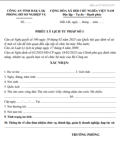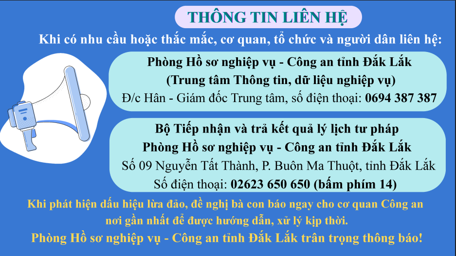 Nhằm giúp cơ quan, tổ chức và Nhân dân hiểu rõ quy định của pháp luật về cấp Phiếu lý lịch tư pháp, thực hiện đúng thủ tục và chủ động phòng ngừa các hành vi lừa đảo, Phòng Hồ sơ nghiệp vụ - Công an tỉnh Đắk Lắk thông tin một số nội dung như sau: