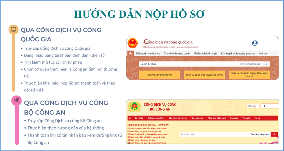 Cách nộp hồ sơ đăng ký cấp Phiếu lý lịch tư pháp qua Cổng dịch vụ công Quốc gia hoặc Cổng dịch vụ Công Bộ Công an