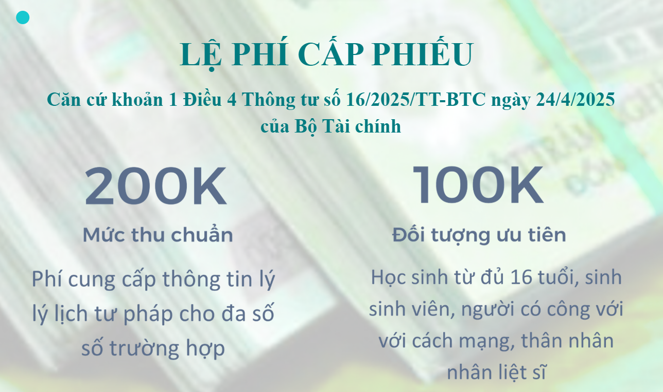 Phí cung cấp thông tin lý lịch tư pháp: 200.000 đồng/lần/người.