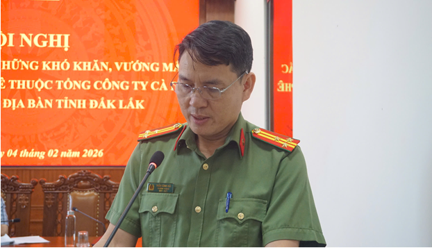 Chiều ngày 04/02/2026, tại trụ sở Công an tỉnh Đắk Lắk, đồng chí Nguyễn Thiên Văn - Tỉnh ủy viên, Phó Chủ tịch UBND tỉnh chủ trì Hội nghị phối hợp giải quyết những khó khăn, vướng mắc tại các Công ty cà phê thuộc Tổng Công ty cà phê Việt Nam trên địa bàn tỉnh Đắk Lắk.