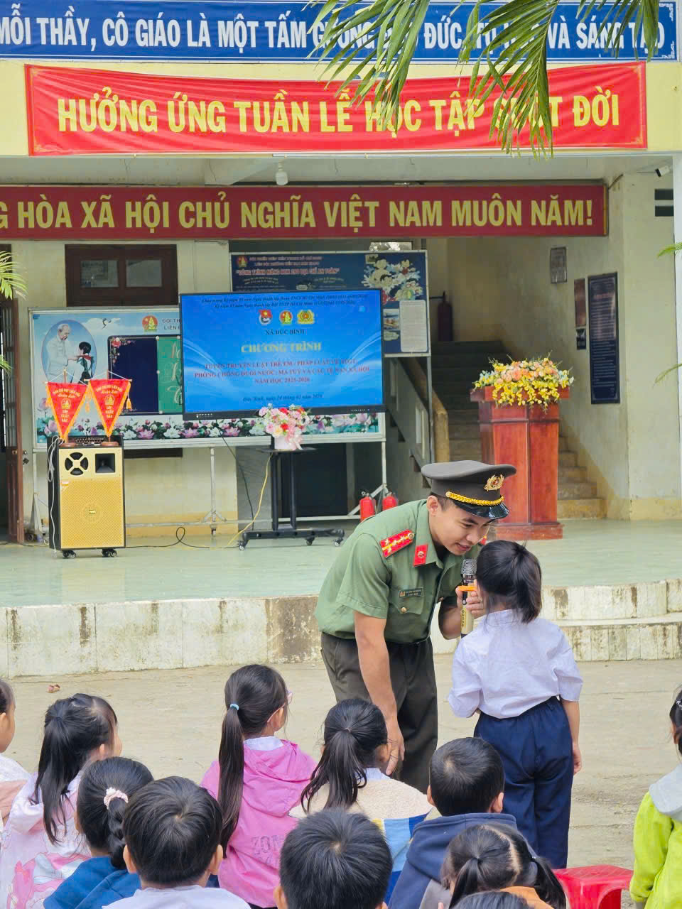 Sáng ngày 23/03/2026, Công an xã Đức Bình đã phối hợp Đội Chữa cháy và CHCN khu vực 11 tổ chức hoạt động tuyên truyền về đảm bảo an toàn khi tham giao thông, phòng cháy chữa cháy và phòng ngừa đuối nước cho học sinh tiểu học trên địa bàn xã, góp phần trang bị kiến thức và kỹ năng cần thiết cho các em trong cuộc sống hằng ngày.