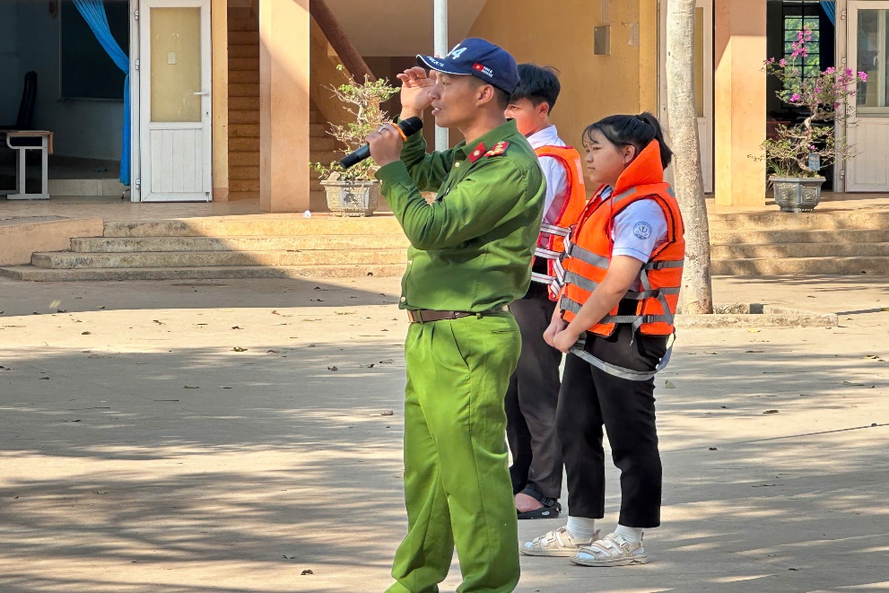 Ngoài ra, các em còn được hướng dẫn thực hành một số kỹ năng cần thiết như sử dụng và mặc áo phao đúng cách, góp phần nâng cao khả năng ứng phó trong các tình huống thực tế.