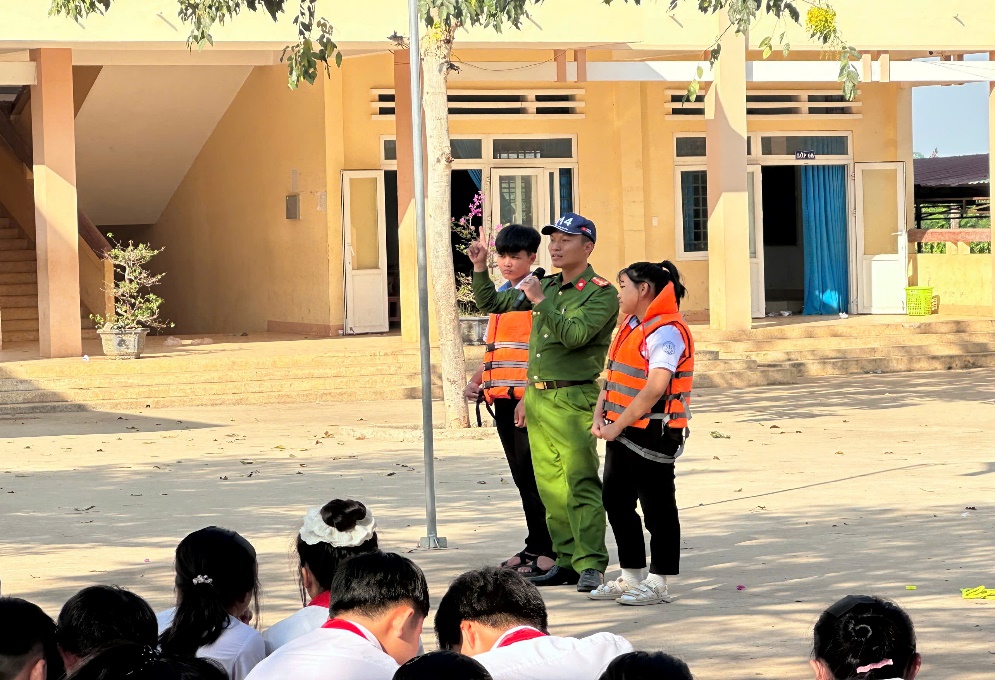 Sáng ngày 06/4/2026, Công an xã Ea Ning phối hợp với Trường THCS Ea Hu và Đội Chữa cháy và Cứu nạn, cứu hộ Khu vực 5 tổ chức chương trình tuyên truyền kiến thức về phòng, chống bạo lực học đường và phòng, chống tai nạn đuối nước cho cán bộ, giáo viên và 535 học sinh của nhà trường.