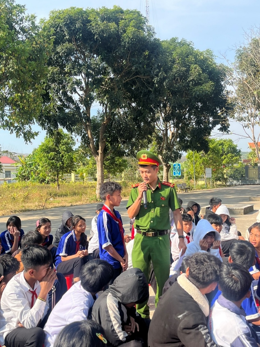 Đồng thời trong thời gian này, Công an xã đã phối hợp với trường THCS Hùng Vương tổ chức 01 buổi tuyên truyền tuyên truyền những nội dung cơ bản của Luật Trật tự, an toàn giao thông đường bộ; hướng dẫn kỹ năng tham gia giao thông an toàn; phân tích các lỗi vi phạm phổ biến như không đội mũ bảo hiểm, điều khiển phương tiện khi chưa đủ tuổi, chở quá số người quy định, sử dụng rượu, bia khi điều khiển phương tiện…. Qua đó, thu hút 150 người tham gia hưởng ứng; đồng thời, tặng 05 mũ bảo hiểm, 10 suất quà cho các em học sinh.
