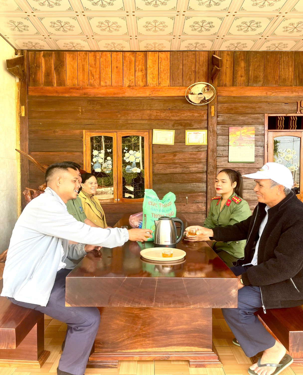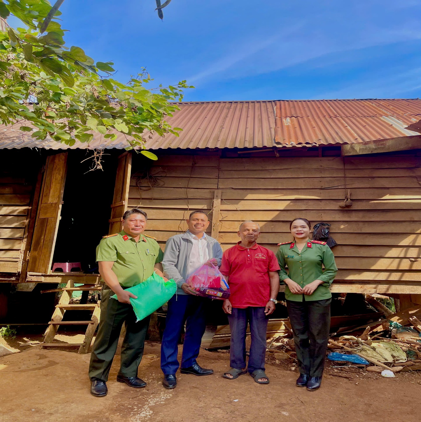 Trong dịp này, Công an xã phối hợp với các mạnh thường quân đã chuẩn bị 16 phần quà để trao tặng cho người có uy tín, già làng, quần chúng tích cực trên địa bàn. Những món quà tuy nhỏ nhưng thể hiện tình cảm chân thành, sự trân trọng của lực lượng Công an đối với vai trò, đóng góp to lớn của các cá nhân tiêu biểu trong việc giữ gìn sự bình yên tại cơ sở.