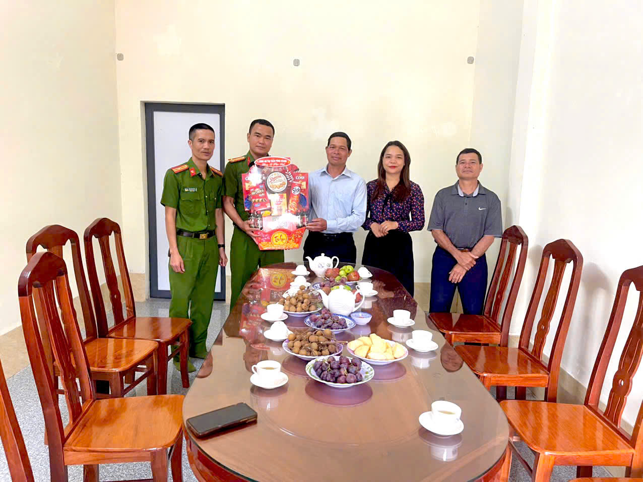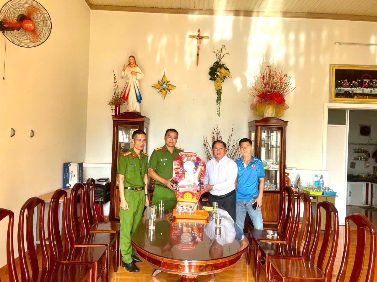 Đại diện Lãnh đạo Đảng ủy, UBND xã, Công an xã thăm tặng quà tại Giáo xứ Pơng Drang