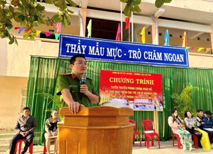 Sáng ngày 19/01/2026, Chi đoàn Công an xã Tuy An Bắc phối hợp với Trường THCS Võ Trứ, thôn Long Bình, xã Tuy An Bắc tổ chức buổi tuyên truyền về phòng, chống pháo nổ, đồ chơi nguy hiểm cho trẻ em bị nghiêm cấm; pháp luật về phòng cháy, chữa cháy.