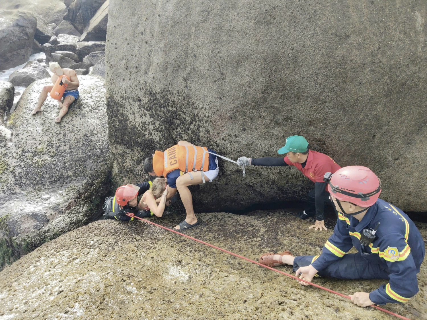 Thời điểm tiếp cận, 02 du khách đã tự bơi được vào bờ; 01 hướng dẫn viên du lịch và 02 du khách còn lại bị mắc kẹt tại các hốc đá ven biển, trong tình trạng hết sức nguy hiểm do sóng lớn liên tục xô đập. Trước tình huống khẩn cấp, lực lượng cứu nạn vừa trấn an nạn nhân, vừa phối hợp với Cảnh sát cơ động, Công an xã Hòa Xuân và Đồn Biên phòng Cửa khẩu cảng Vũng Rô sử dụng dây cứu hộ, vượt qua các mỏm đá trơn trượt, tiếp cận và đưa toàn bộ nạn nhân vào bờ an toàn.