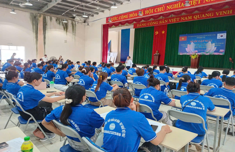 Phòng An ninh đối ngoại Công an tỉnh Đắk Lắk đã phối hợp với Sở Nội vụ và các cơ quan chức năng tổ chức tuyên truyền, phổ biến pháp luật cho 348 công dân chuẩn bị xuất cảnh đi Hàn Quốc