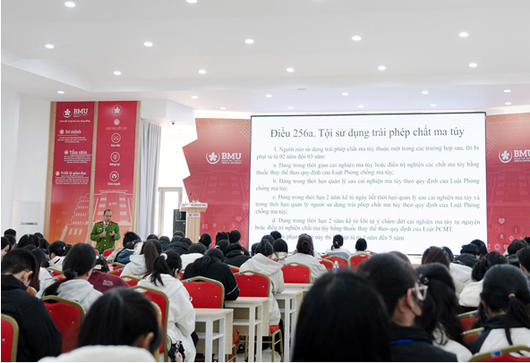 Trong đó, chú trọng thực hiện Dự án 7 trong Chương trình mục tiêu quốc gia phòng chống ma túy đến năm 2030, Quyết định số 2984/QĐ-BGDĐT ngày 28/10/2025 của Bộ Giáo dục và Đào tạo về việc ban hành Kế hoạch triển khai Tiểu Dự án 3 :Tăng cường công tác tuyên truyền giáo dục pháp luật về phòng, chống ma túy cho học sinh, sinh viên giai đoạn 2025-2030, Phòng Cảnh sát điều tra tội phạm về ma túy Công an tỉnh Đắk Lắk đã phối hợp với các cơ sở giáo dục tuyên truyền phòng, chống ma túy cho sinh viên các trường đại học trên địa bàn tình gồm: Trường Đại học Đông Á, Trường Đại học Y Dược Buôn Ma Thuột, tập trung tuyên truyền quan điểm của Đảng, Nhà nước về phòng, chống và kiểm soát ma túy; tình hình tội phạm ma túy, cách nhận biết các chất ma túy, trách nhiệm trong công tác phòng, chống ma túy đặc biệt là Điều 256a Bộ Luật Hình sự: Tội “Sử dụng trái phép chất ma túy”. Qua đó, trang bị, nâng cao kiến thức pháp luật và kỹ năng tự phòng, chống, bảo vệ bản thân, không sa vào tệ nạn và tội phạm ma túy, với khẩu hiệu “Sinh viên nói không với ma túy”.