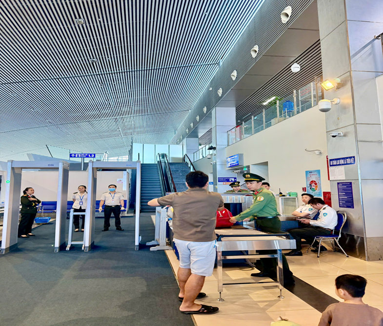 Song song với đó, công tác giám sát an ninh bằng hệ thống camera được tăng cường; tổ chức trực giám sát, trực khẩn nguy 24/24 giờ, tập trung theo dõi chặt chẽ các khu vực trọng yếu, hệ thống tường rào an ninh, lối ra vào Cảng hàng không và những vị trí tiềm ẩn nguy cơ mất an ninh, trật tự. Các tổ kiểm soát an ninh được bố trí hợp lý tại các lối đi giữa các khu vực nhằm kịp thời phát hiện, xử lý ngay từ đầu các dấu hiệu nghi vấn, không để hình thành “điểm mù”, “khoảng trống” trong công tác bảo đảm an ninh.