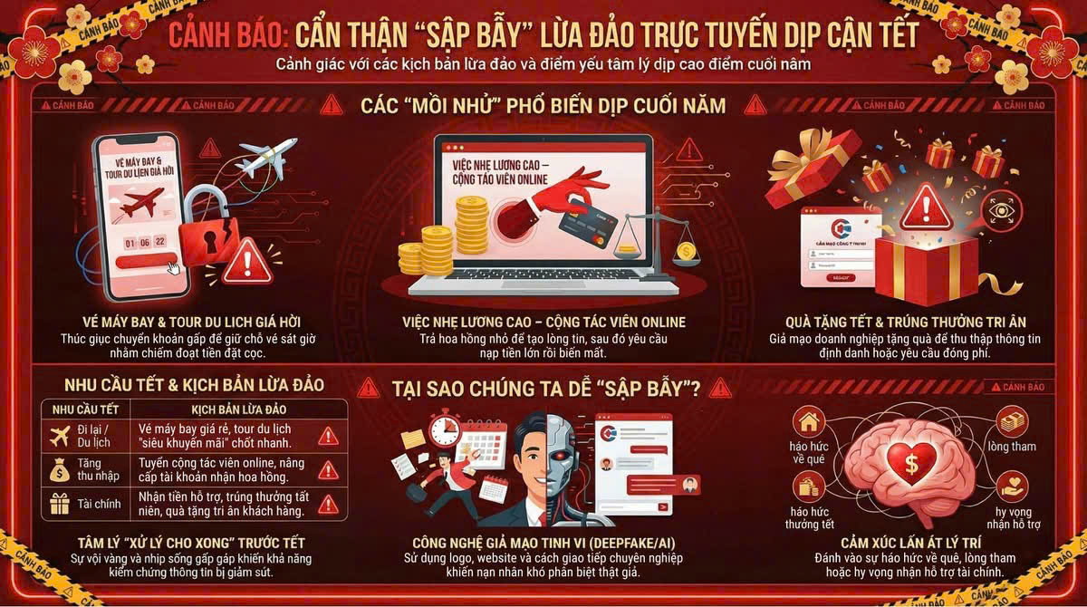 Theo thông tin từ Cục An ninh mạng và phòng, chống tội phạm sử dụng công nghệ cao (A05, Bộ Công an), từ đầu năm 2025 đến nay đã phát hiện gần 1.500 vụ lừa đảo qua mạng, gây thiệt hại hơn 1.660 tỷ đồng. Trước đó, trong năm 2024, thiệt hại do lừa đảo trực tuyến trên toàn quốc lên tới hơn 12.000 tỷ đồng, với trung bình hơn 18.000 lượt phản ánh mỗi tháng. Thực tế này cho thấy tình trạng lừa đảo du lịch trực tuyến không chỉ diễn ra ở các thành phố lớn mà còn tiềm ẩn nguy cơ đối với người dân tại Đắk Lắk khi nhu cầu du lịch tăng cao dịp Tết.