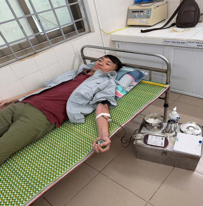Hình ảnh đồng chí Hùng hiến máu cấp cứu đột xuất tại Bệnh viện đa khoa Phú Yên