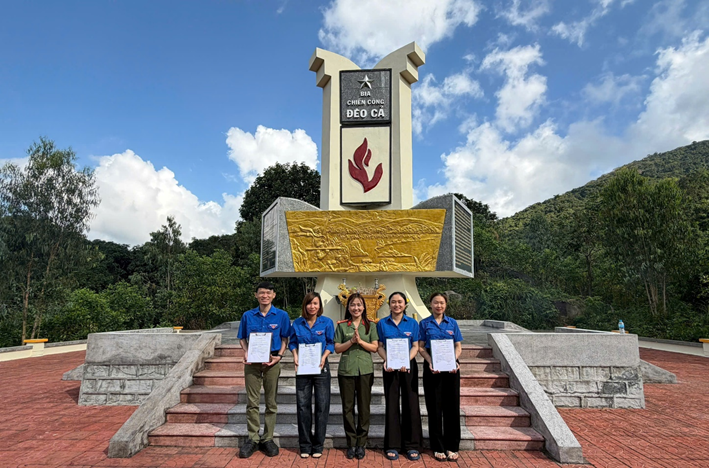 Đồng chí Hùng nhận quyết định đoàn viên ưu tú trong dịp về địa chỉ đỏ tại khu di tích Bia chiến công Đèo Cả