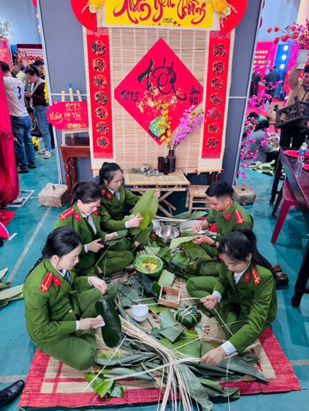 Hội xuân năm nay quy tụ sự tham gia của 27 đơn vị trực thuộc Công an tỉnh, với nhiều hoạt động phong phú, đậm đà bản sắc Tết cổ truyền như: biểu diễn văn nghệ mừng Đảng – mừng Xuân, thi trang trí background Tết, gói bánh chưng, tổ chức các trò chơi dân gian như kéo co, hái lộc đầu xuân, kẹp bóng tiếp sức, gánh lúa – gánh lộc đầu năm… Ở đó, không còn khoảng cách giữa cấp bậc, chức vụ, mà chỉ còn lại những nụ cười rạng rỡ, những bàn tay cùng nhau gói bánh, những tiếng reo vui hòa vào không khí ấm áp.