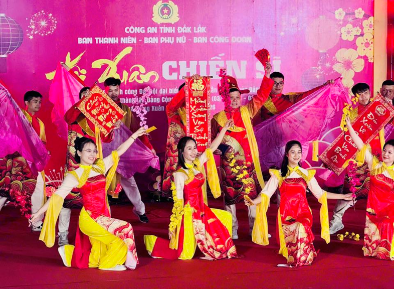 Thiết thực chào đón Tết cổ truyền Xuân Bính Ngọ 2026 và kỷ niệm 96 năm Ngày thành lập Đảng Cộng sản Việt Nam, sáng ngày 03/02/2026, Ban Thanh niên, Ban Phụ nữ, Ban Công đoàn Công an tỉnh Đắk Lắk đã phối hợp tổ chức chương trình “Hội xuân chiến sĩ” năm 2026.