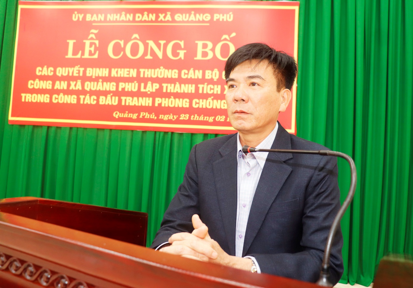 Khen thưởng đột xuất 19 cá nhân Công an xã Quảng Phú lập thành tích xuất sắc trong đợt cao điểm tấn công, trấn áp tội phạm