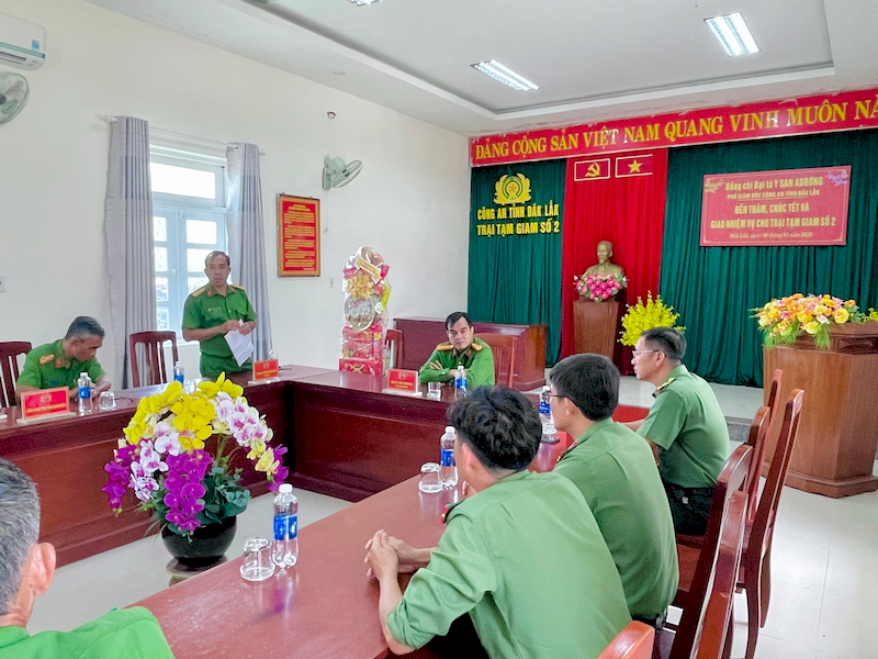 Nhằm kiểm tra việc thực hiện nhiệm vụ đợt cao điểm tấn công, trấn áp tội phạm bảo đảm an ninh, trật tự phục vụ bầu cử đại biểu Quốc hội khóa XVI và đại biểu Hội đồng nhân dân các cấp nhiệm kỳ 2026–2031, Tết Nguyên đán Bính Ngọ và các lễ hội đầu xuân năm 2026 trên địa bàn tỉnh, sáng ngày 30/01/2026, Đoàn công tác Công an tỉnh do đồng chí Đại tá Y San ADrơng – Ủy viên Ban Thường vụ Đảng ủy, Phó Giám đốc Công an tỉnh Đắk Lắk làm Trưởng đoàn đã đến thăm, chúc Tết và kiểm tra công tác thi hành tạm giữ, tạm giam và thi hành án hình sự tại Trại tạm giam số 2.