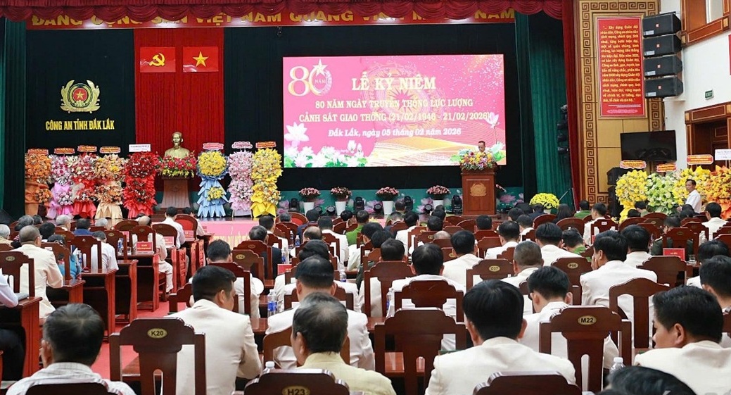 Chiều ngày 05/02/2026, tại trụ sở, Công an tỉnh Đắk Lắk long trọng tổ chức Lễ kỷ niệm 80 năm Ngày Truyền thống lực lượng Cảnh sát giao thông (21/02/1946 - 21/02/2026).