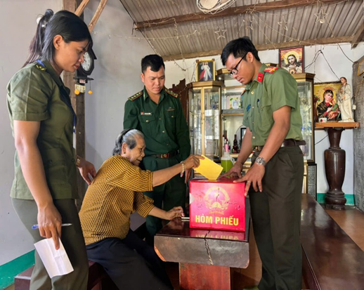 Trong ngày bầu cử, cán bộ, chiến sĩ Công an xã Buôn Đôn có mặt từ rất sớm tại các khu vực bỏ phiếu để thực hiện nhiệm vụ bảo đảm an ninh, trật tự; hướng dẫn, hỗ trợ người dân tham gia bầu cử đúng quy định. Đặc biệt, lực lượng Công an xã đã phối hợp chặt chẽ với lực lượng Biên phòng và hệ thống chính trị ở cơ sở tổ chức đưa thùng phiếu phụ đến tận nhà hỗ trợ những cử tri là người già yếu, người khuyết tật, người đi lại khó khăn không thể trực tiếp đến khu vực bỏ phiếu. Những lá phiếu được trao tận tay cử tri đã góp phần bảo đảm mọi công dân đều được thực hiện quyền và nghĩa vụ thiêng liêng của mình. Hình ảnh các cán bộ, chiến sĩ Công an xã cùng lực lượng Biên phòng, cán bộ thôn, buôn tận tình hỗ trợ, hướng dẫn cử tri; mang thùng phiếu phụ đến từng hộ gia đình đã để lại nhiều ấn tượng tốt đẹp trong lòng nhân dân. Sự gần gũi, trách nhiệm và tận tụy của lực lượng Công an đã góp phần củng cố niềm tin của nhân dân đối với lực lượng Công an nhân dân, được bà con trên địa bàn đồng tình, ủng hộ và tin yêu.
