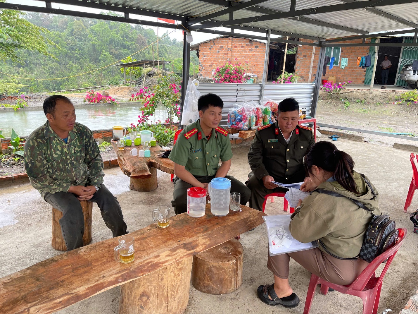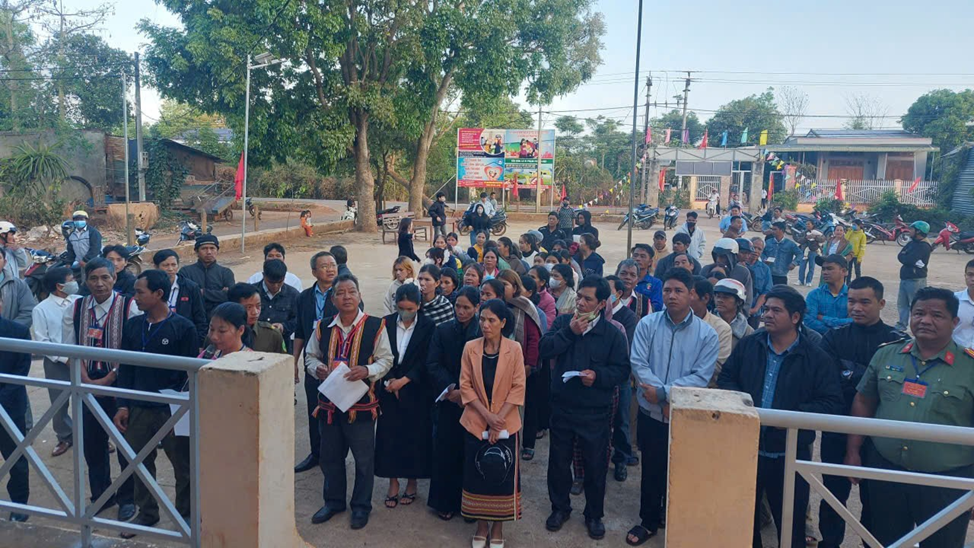 Phòng An ninh nội địa phối hợp Công an xã Krông Á và Ban tự quản thôn đến tận nhà phát thẻ cử tri và vận động người dân tộc Mông tham gia bầu cử.