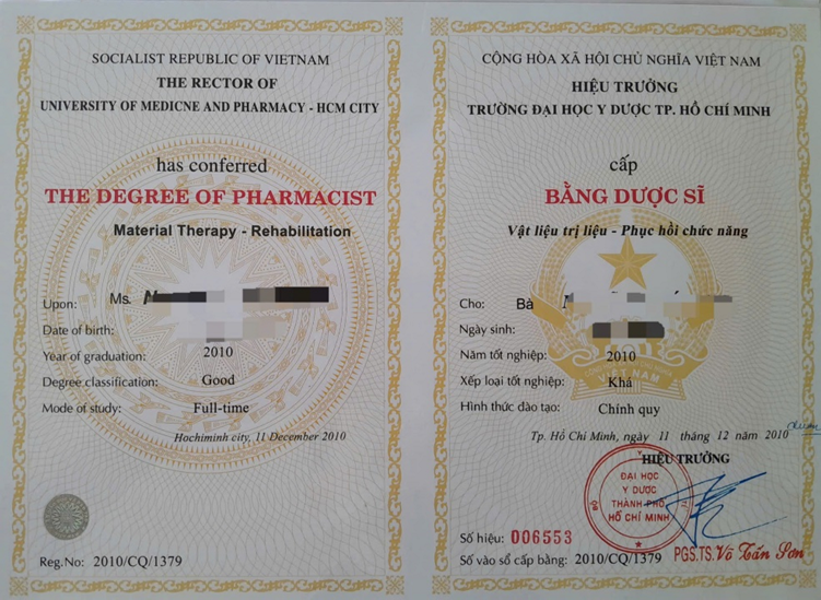 Bằng Dược sĩ giả được vận chuyển qua dịch vụ bưu chính