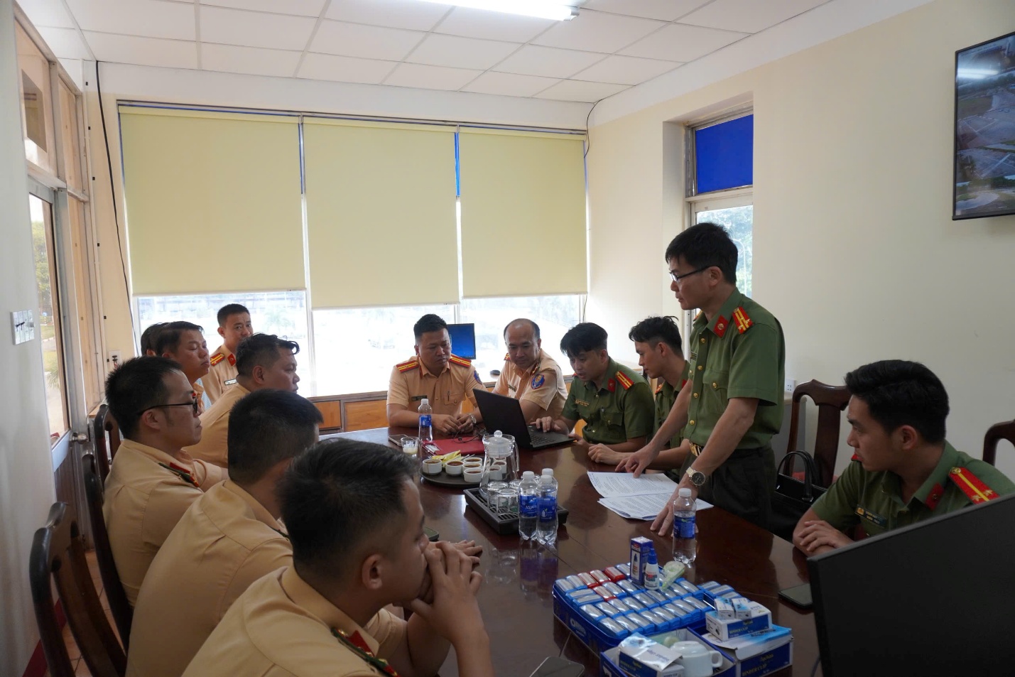 Tham gia đoàn kiểm tra có Tổ giúp việc gồm đồng chí Thượng tá Nguyễn Huy Thành, Trưởng phòng Cảnh sát giao thông; đồng chí Thượng tá Nguyễn Hải Bình, Phó Trưởng phòng Tham mưu cùng các cán bộ chuyên trách thuộc Phòng Cảnh sát giao thông và Phòng An ninh mạng và phòng, chống tội phạm sử dụng công nghệ cao.
