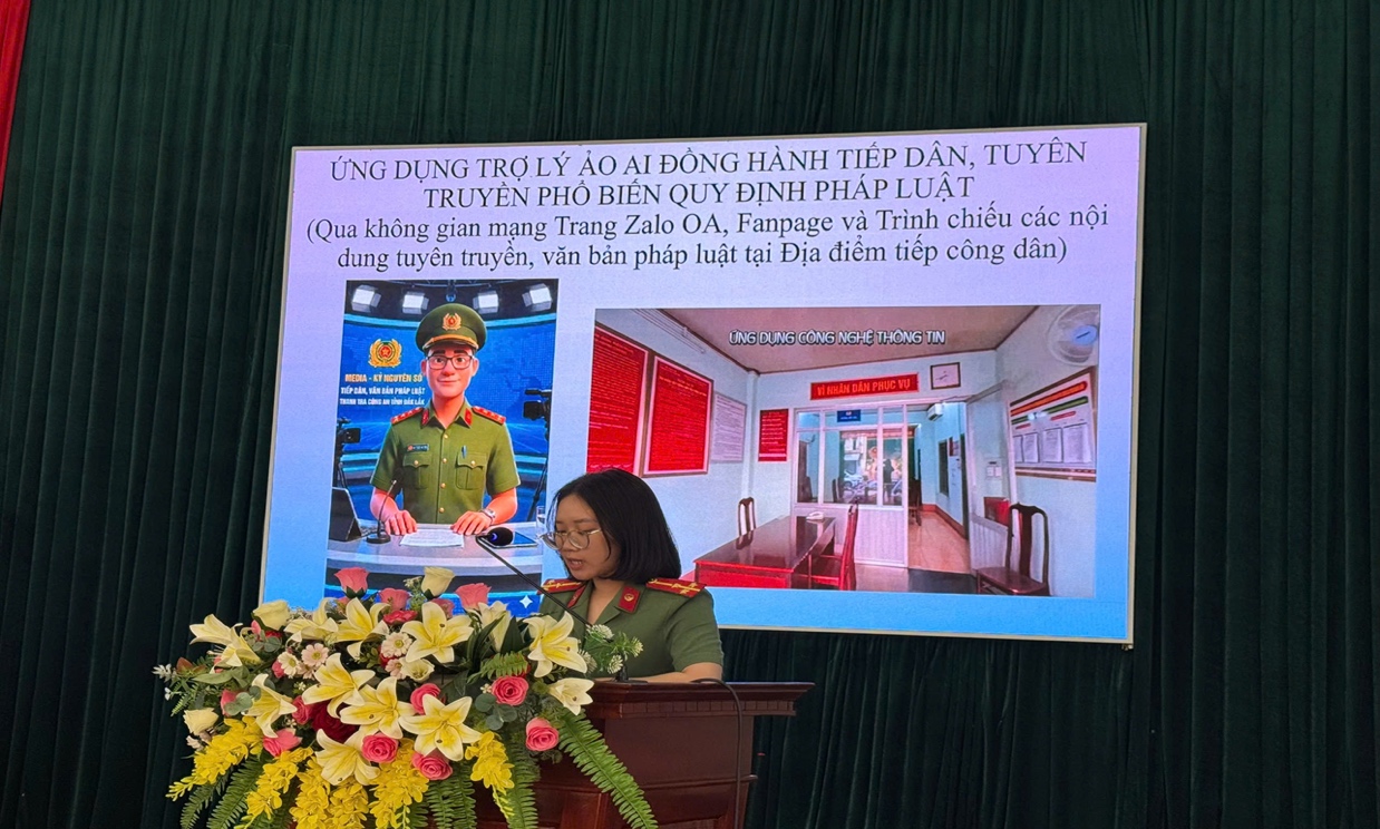 - 100% cán bộ chiến sĩ được tập huấn, bồi dưỡng kiến thức về chuyển đổi số, số hóa tài liệu và nhận, gửi văn bản điện tử. Tập huấn, triển khai quy trình về tiếp nhận, xử lý và giải quyết thủ tục hành chính liên quan khiếu nại, tố cáo cho 100% cán bộ thanh tra chuyên trách, kiêm nhiệm tại Công an cấp cơ sở.