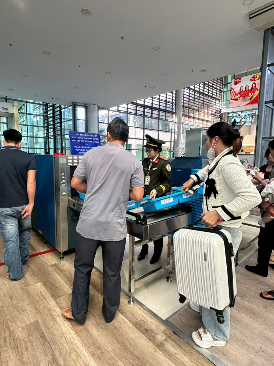 - Chú trọng kiểm soát an ninh, đảm bảo 100% hành khách, hành lý, hàng hóa, bưu gửi qua máy soi chiếu an ninh và kiểm tra trực quan; trong đó, tăng cường kiểm tra trực quan ngẫu nhiên đối với một số hành khách và hành lý đã qua cổng từ, soi chiếu mà không có báo động nhằm kịp thời phát hiện, ngăn chặn vật phẩm nguy hiểm, chất cấm vào khu vực hạn chế hoặc đưa lên tàu bay.