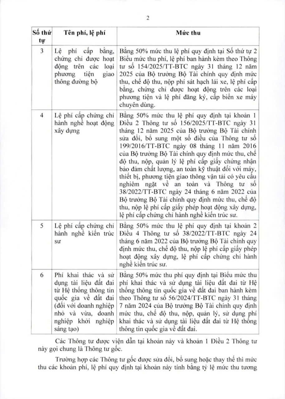 - Giảm 50% mức thu một số khoản phí, lệ phí trong nhiều lĩnh vực như: phí thẩm định cấp phép sử dụng vật liệu nổ công nghiệp; lệ phí cấp bằng, chứng chỉ hoạt động phương tiện giao thông đường bộ; phí khai thác, sử dụng tài liệu đất đai (đối với doanh nghiệp nhỏ và vừa, doanh nghiệp khởi nghiệp sáng tạo)…