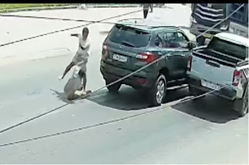 Hình ảnh Mai Anh Nhật tấn công ông H sau va chạm (Ảnh được cắt từ clip)