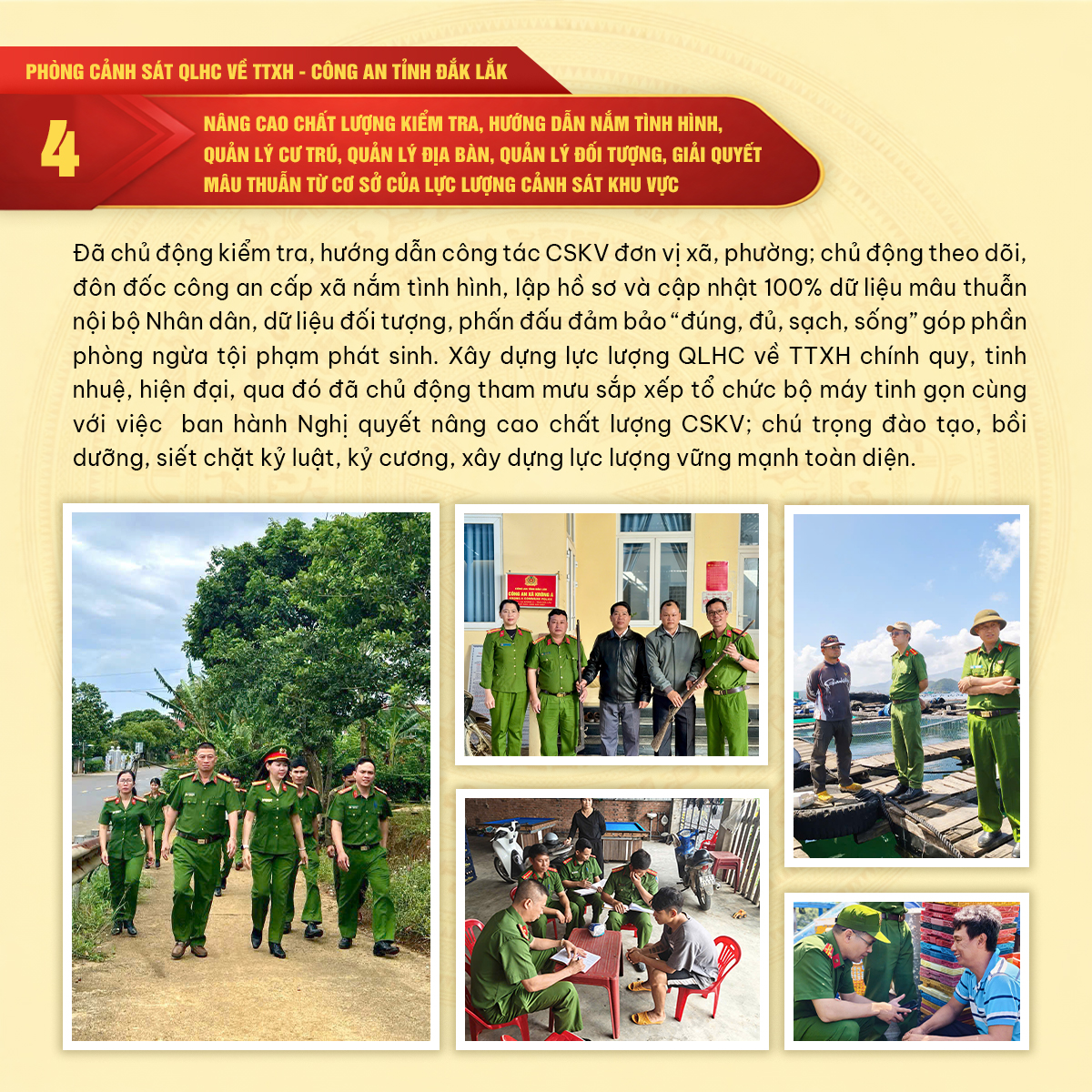 Trong thực tiễn công tác, có thể khẳng định rằng hầu hết các hoạt động phòng ngừa, đấu tranh phòng, chống tội phạm đều có sự tham gia, phối hợp hoặc hỗ trợ trực tiếp, gián tiếp của lực lượng Cảnh sát QLHC về TTXH. Từ việc rà soát, xác minh thông tin phục vụ điều tra, truy xét đối tượng; quản lý cư trú phục vụ phòng ngừa tội phạm; kiểm tra các ngành nghề kinh doanh có điều kiện; đến việc khai thác dữ liệu dân cư phục vụ xác thực danh tính, truy vết đối tượng… tất cả đều thể hiện vai trò nền tảng, “đầu mối dữ liệu” quan trọng của lực lượng.