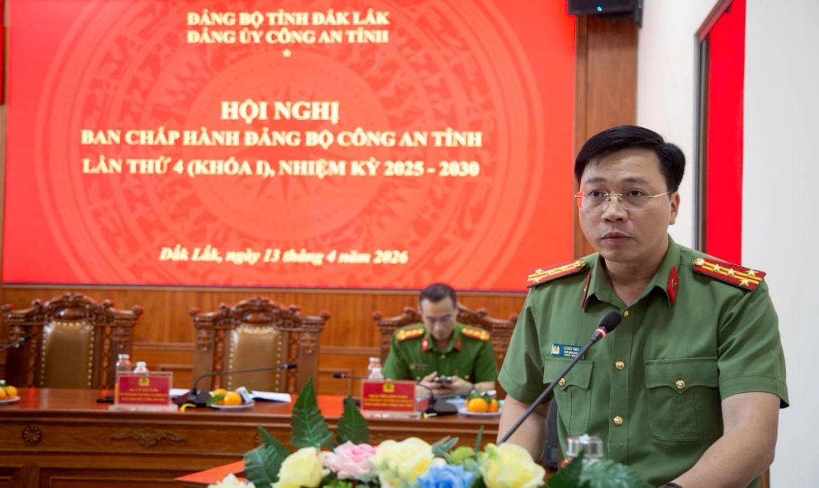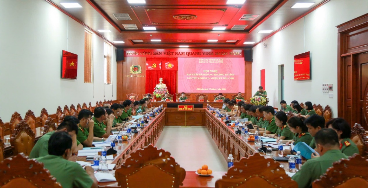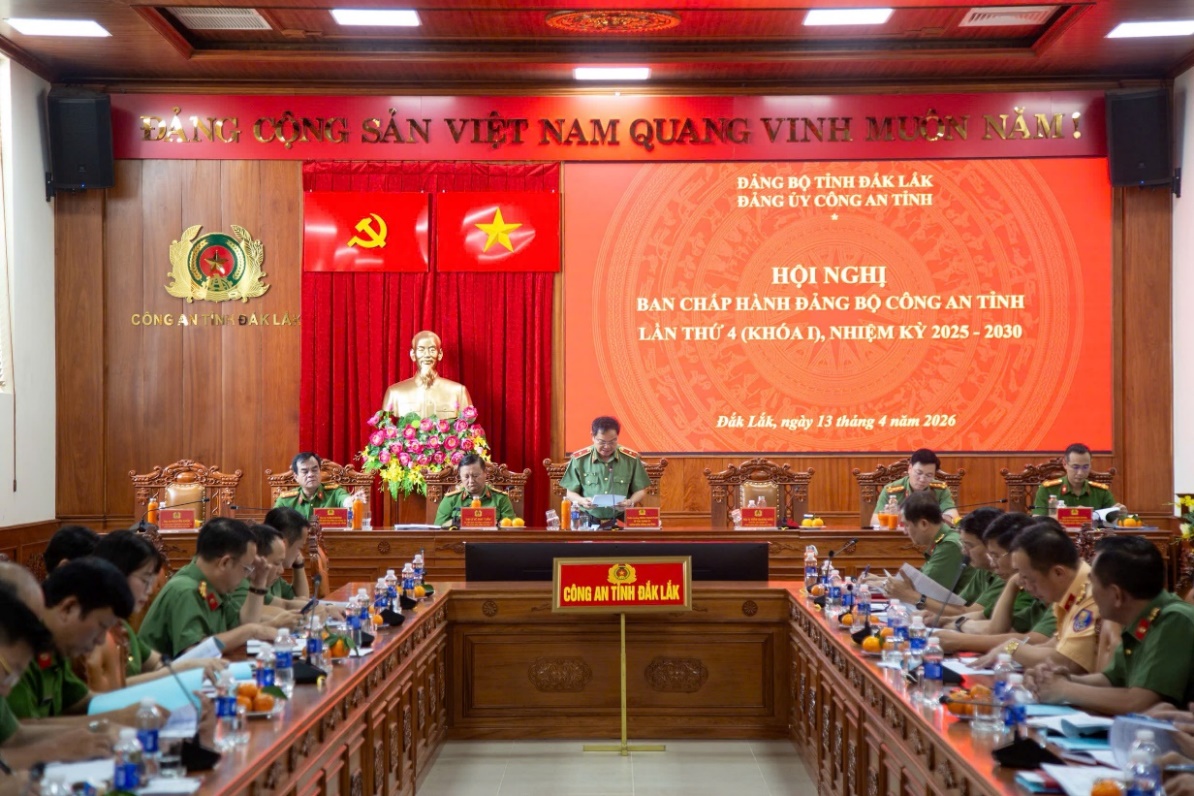 Chiều ngày 13/4/2025, Đảng ủy Công an tỉnh Đắk Lắk tổ chức Hội nghị Ban Chấp hành Đảng bộ Công an tỉnh lần thứ 4 (Khóa I) nhiệm kỳ 2025 – 2030 để sơ kết công tác lãnh đạo, chỉ đạo thực hiện nhiệm vụ chính trị, công tác xây dựng Đảng, xây dựng lực lượng quý I, triển khai nhiệm vụ công tác trọng tâm quý II năm 2026 và một số nhiệm vụ khác theo Chương trình công tác của Ban Chấp hành Đảng bộ Công an tỉnh năm 2026.