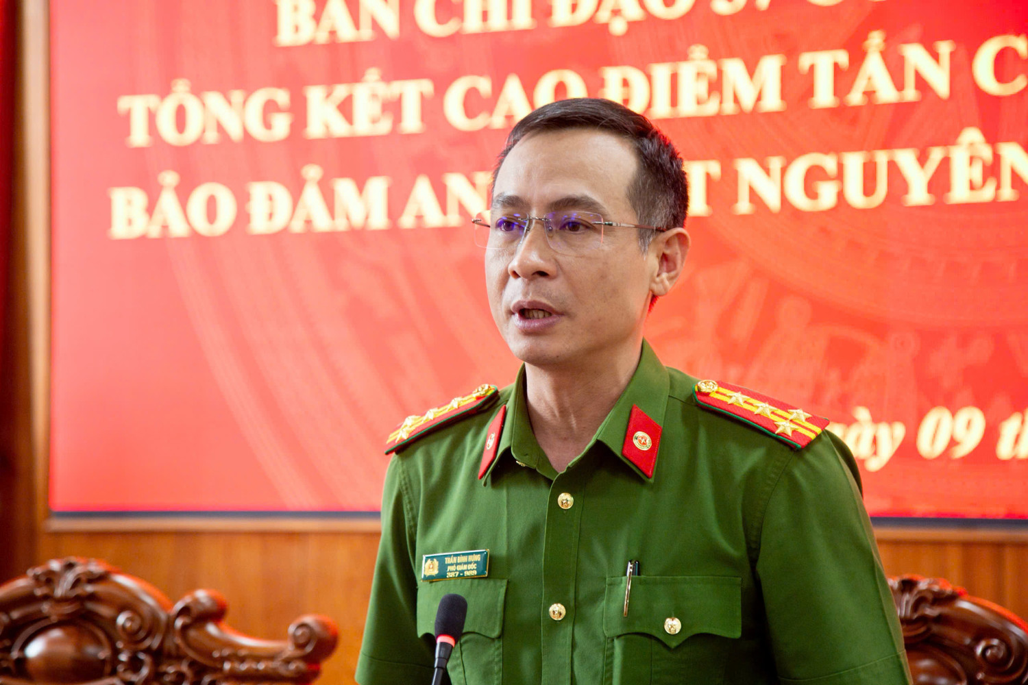 Hình ảnh đồng chí Thiếu tướng Phan Thanh Tám – Giám đốc Công an tỉnh kết luận, chỉ đạo hội nghị (Ảnh ANTV Đắk Lắk)