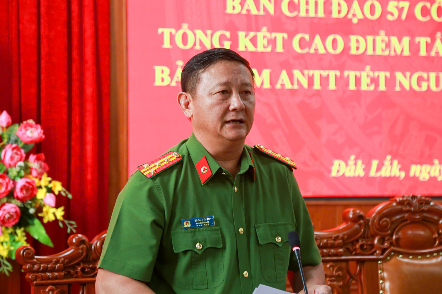 Hình ảnh đồng chí Đại tá Võ Duy Tuấn – Phó Giám đốc Công an tỉnh phát biểu chỉ đạo (Ảnh ANTV Đắk Lắk)