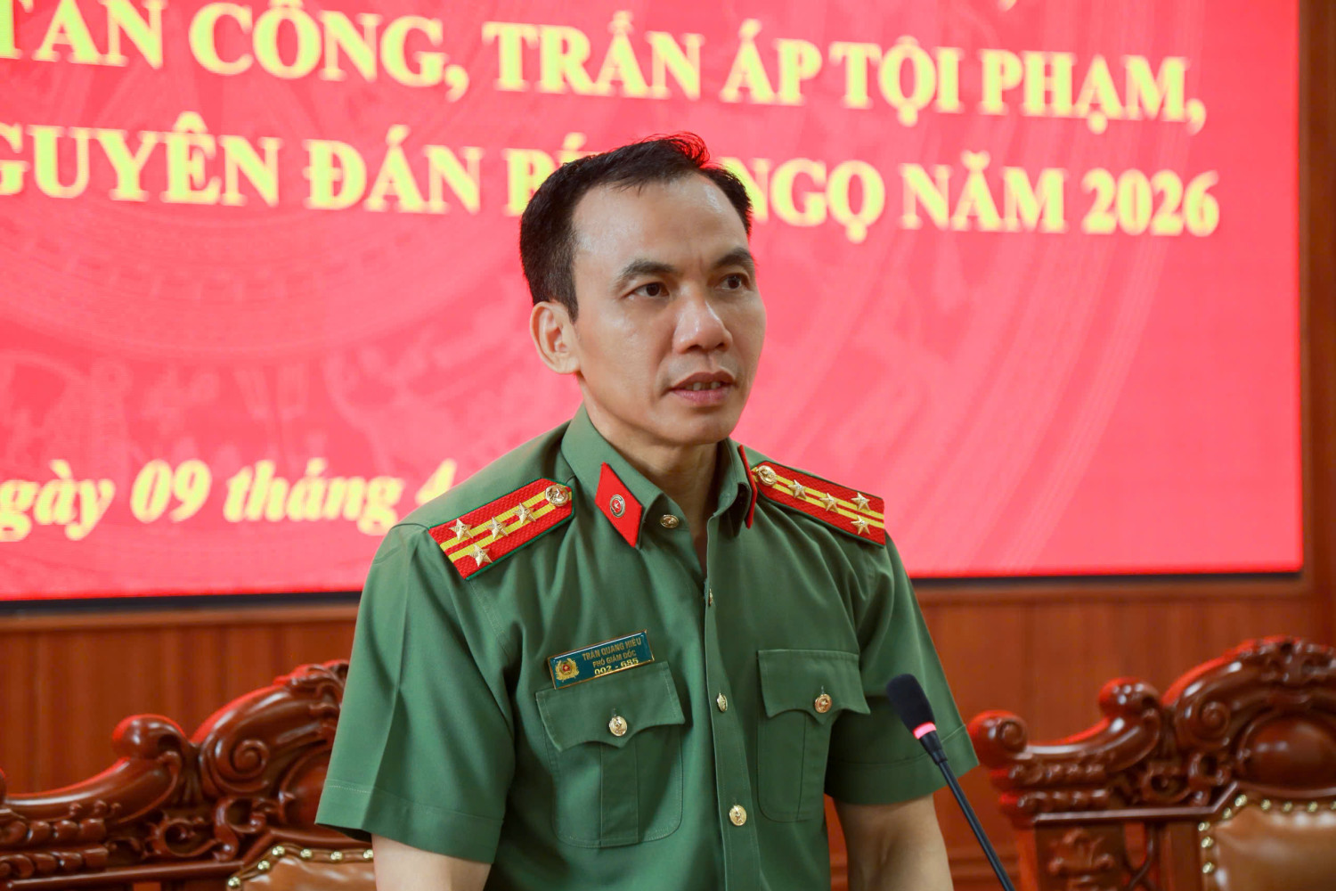 Phát biểu khai mạc hội nghị, đồng chí Thiếu tướng Phan Thanh Tám - Giám đốc Công an tỉnh đã quán triệt, yêu cầu các đại biểu tham dự Hội nghị phát huy tinh thần trách nhiệm, tập trung trí tuệ, thảo luận thẳng thắn, dân chủ, thực chất; đánh giá khách quan, toàn diện tình hình, kết quả công tác; làm rõ những vấn đề nổi lên về ANTT; kiến nghị các chủ trương, giải pháp trọng tâm trong quý II/2026 để tiếp tục giữ vững tình hình ANTT trên địa bàn, đồng thời tạo chuyển biến rõ nét hơn trong thực hiện Nghị quyết số 57, phục vụ hiệu quả công tác công an trong thời gian tới.
