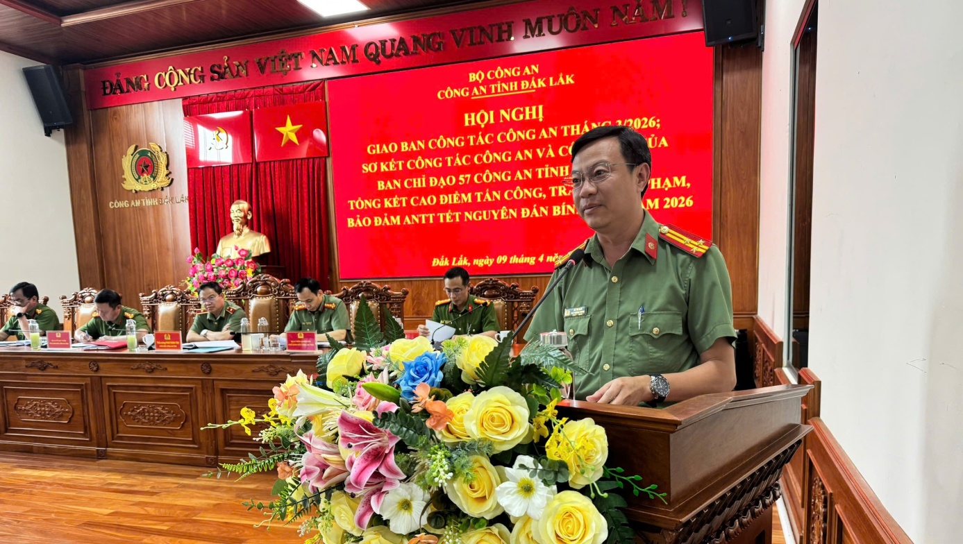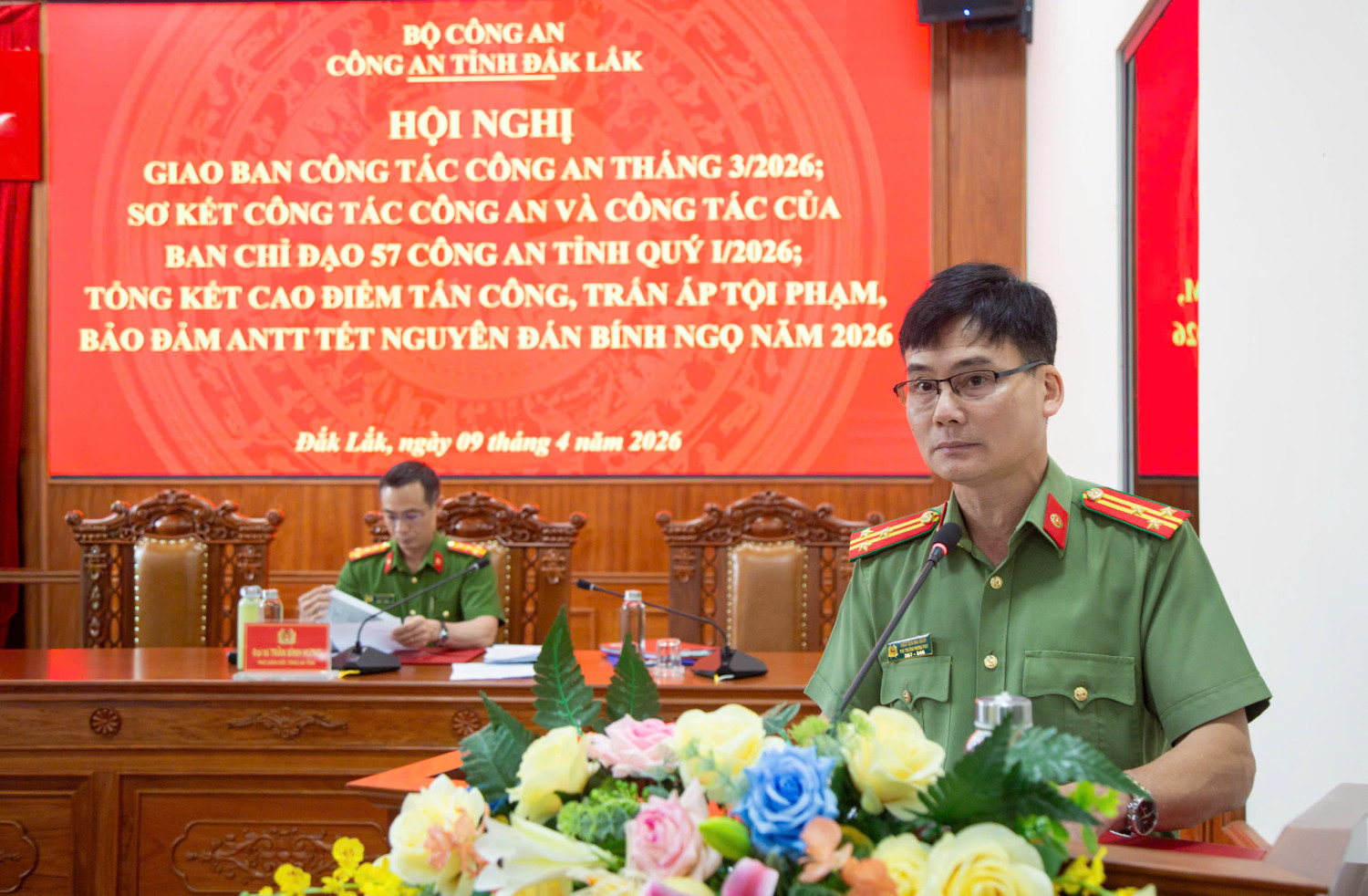 Hội nghị đã thông qua Báo cáo tình hình, kết quả công tác công an tháng 03/2026; tình hình, kết quả công tác công an quý I/2026; kết quả công tác của Ban chỉ đạo 57 quý I/2026 và tổng kết cao điểm tấn công, trấn áp tội phạm. Trong đó, đồng chí Thượng tá Nguyễn Hải Bình - Phó trưởng Phòng Tham mưu nêu rõ: