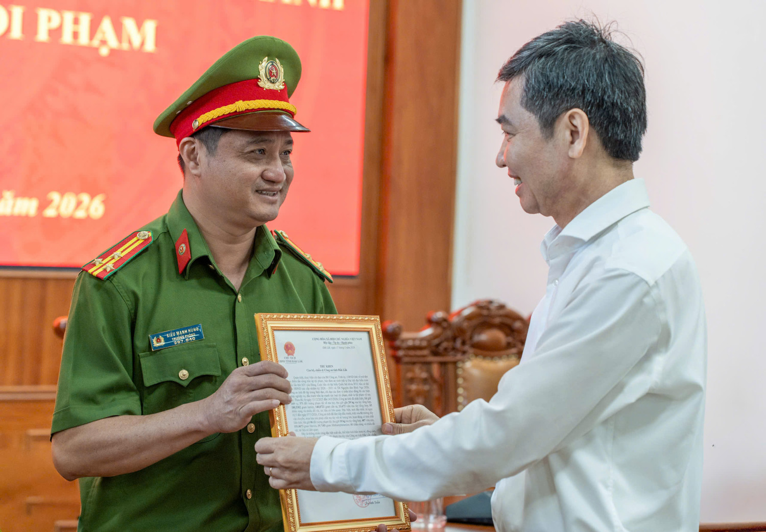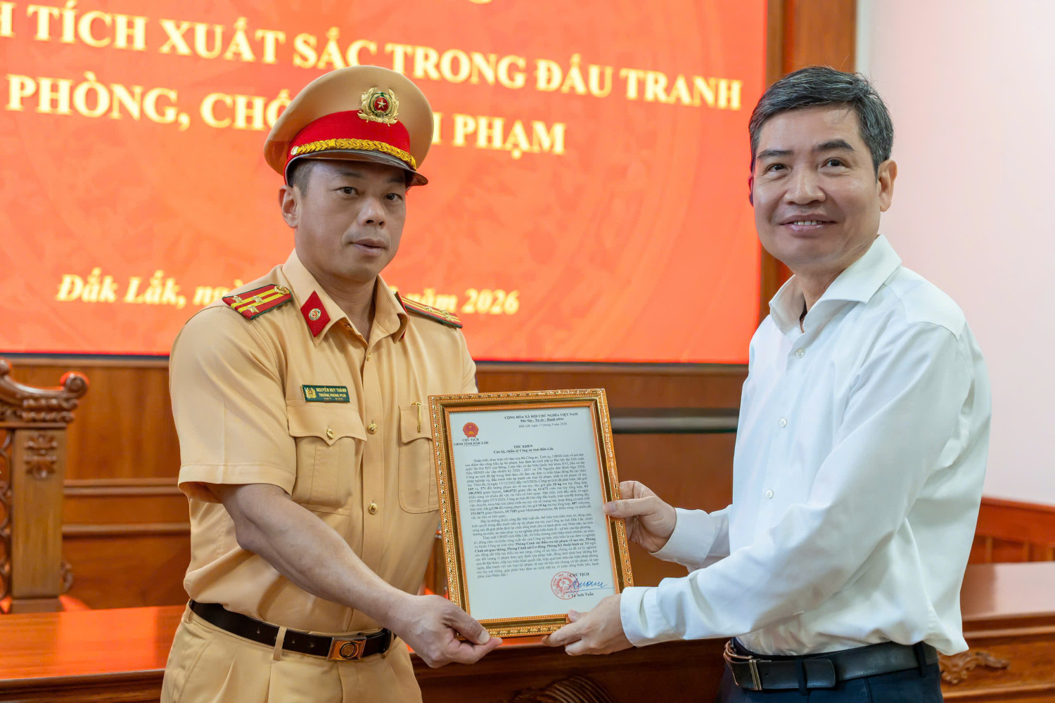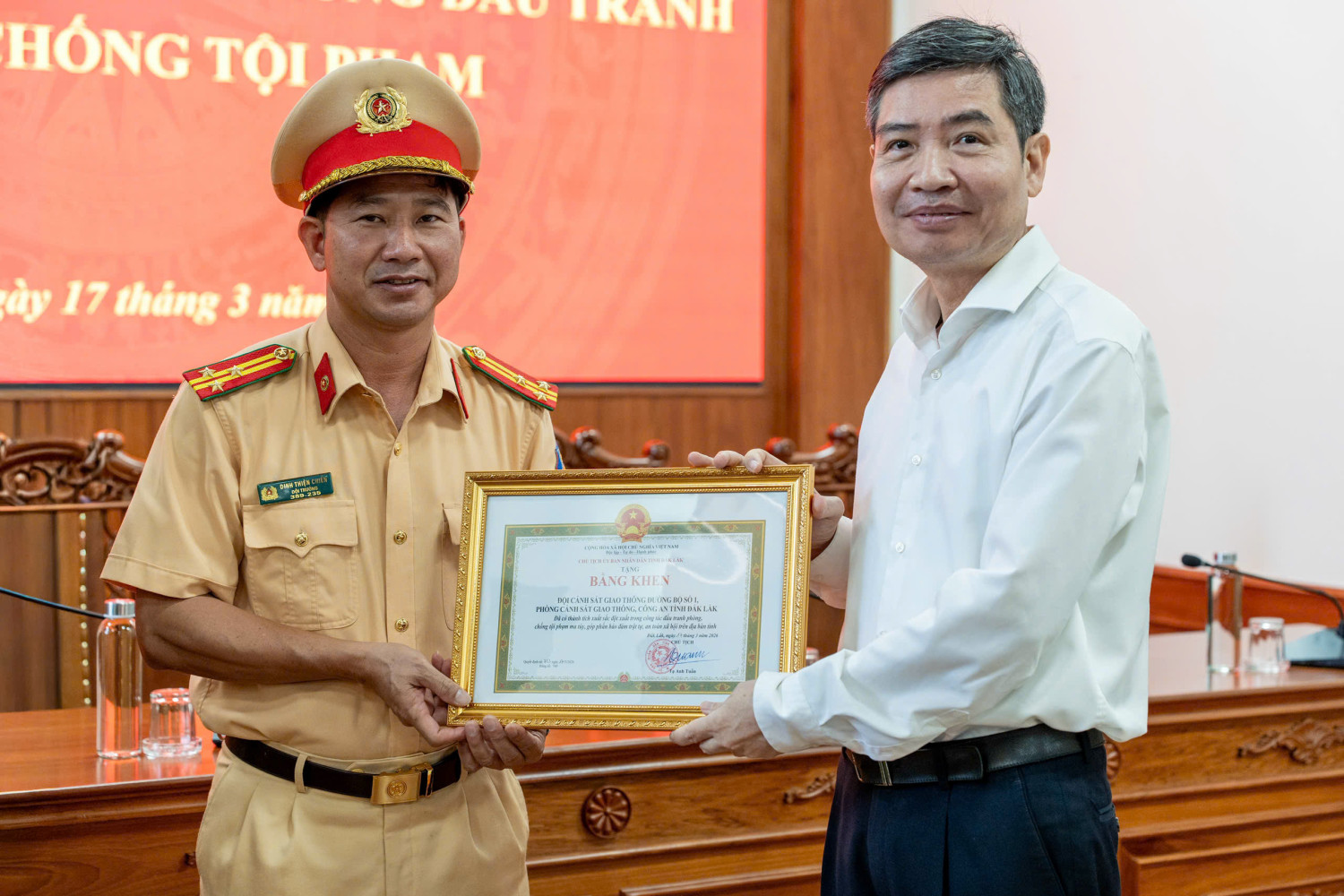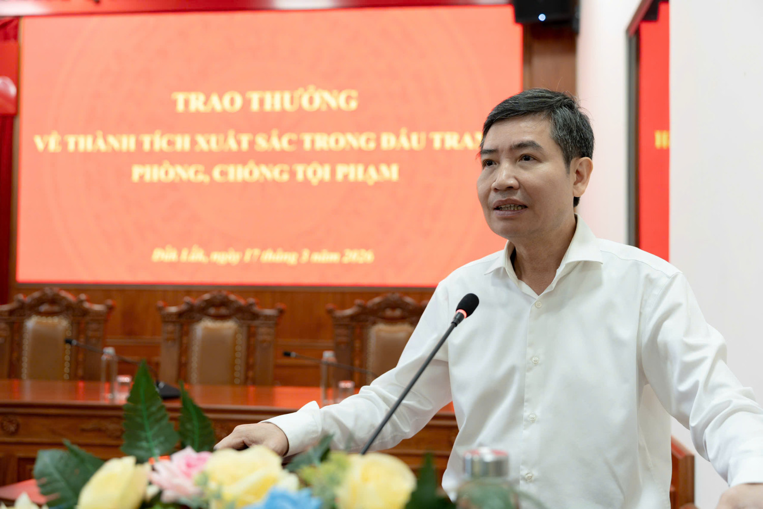 Sáng 17/3/2026, Công an tỉnh Đắk Lắk tổ chức lễ tuyên dương, khen thưởng các tập thể, cá nhân có thành tích xuất sắc trong công tác đấu tranh phòng, chống tội phạm, bảo đảm an ninh trật tự trên địa bàn. Đồng chí Tạ Anh Tuấn – Phó Bí thư Tỉnh ủy, Chủ tịch UBND tỉnh đến dự và trao thưởng.