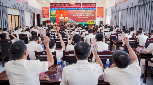 Đảng viên biểu quyết thông qua Nghị quyết Đại hội Đảng bộ cơ sở Phòng An ninh nội địa nhiệm kỳ 2025 - 2030