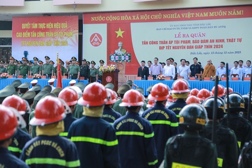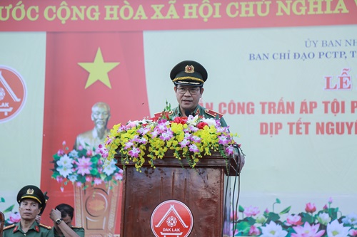 Sáng ngày 15/12/2023, Ban Chỉ đạo phòng, chống tội phạm,tệ nạn xã hội và xây dựng phong trào toàn dân bảo vệ ANTQ tỉnh Đắk Lắk tổ chức Lễ ra quân tấn công trấn áp tội phạm, bảo đảm an ninh, trật tự dịp Tết Nguyên đán Giáp Thìn 2024. Đồng chí Võ Văn Cảnh, Phó Chủ tịch UBND tỉnh – Trưởng Ban Chỉ đạo tỉnh chủ trì buổi Lễ. Tham dự có các đồng chí đại diện lãnh đạo Tỉnh ủy, UBND tỉnh Đắk Lắk, các sở, ban, ngành và CBCS các lực lượng vũ trang.
