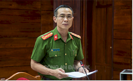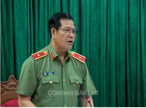 Đồng chí Đại tá Trần Bình Hưng - Phó Giám đốc Công an tỉnh báo cáo tóm tắt kết quả triển khai Đề án 06/CP tháng 5/2024 trên địa bàn tỉnh