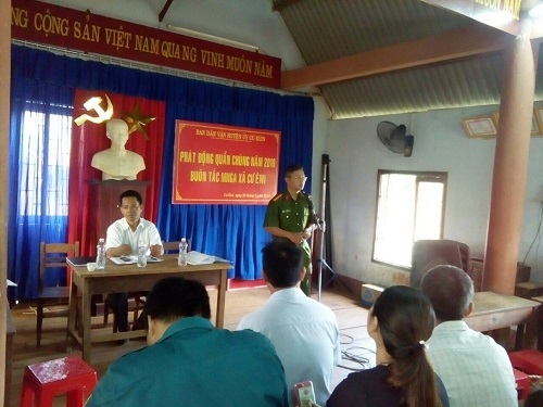 Liên tục trong 02 ngày (28 và 29/8/2019), Công an huyện Cư Kuin đã phối hợp tổ chức 02 buổi phát động phong trào toàn dân bảo vệ an ninh Tổ quốc tại địa bàn buôn Jung A, Jung B - xã Ea Ktur, buôn Tắc M’Ngà - xã Cư Êwi, đã huy động sự tham gia của Ban Dân vận Huyện ủy, cấp ủy, chính quyền, đoàn thể các xã và có khoảng 350 lượt bà con người dân tộc thiểu số đến tham dự. Trong dịp này, đại diện lãnh đạo Công an huyện đã thông báo nhanh về tình hình, kết quả công tác bảo vệ an ninh quốc gia, đảm bảo trật tự, an toàn xã hội trong thời gian qua trên địa bàn huyện Cư Kuin nói chung và hai xã Ea Ktur, Cư Êwi nói riêng để người dân nắm bắt. Tại buổi phát động, đại diện các đội nghiệp vụ thuộc Công an huyện đã tuyên truyền, phổ biến cho bà con về một số tình hình liên quan đến an ninh dân tộc, nhất là về việc một số đối tượng lợi dụng các hoạt động sinh hoạt tôn giáo trái phép để gây mất an ninh, trật tự, âm mưu, hoạt động của các thế lực thù địch nhằm lôi kéo, kích động, chia rẽ khối đại đoàn kết dân tộc; phương thức, thủ đoạn hoạt động của tội phạm và vi phạm pháp luật liên quan đến “tín dụng đen”, cho vay lãi nặng; hiểm họa của tệ nạn ma túy; đồng thời, vận động Nhân dân đoàn kết thực hiện tốt các hương ước, quy ước của cộng đồng, không tàng trữ vũ khí, vật liệu nổ, công cụ hỗ trợ; thực hiện nghiêm các quy định về phòng cháy, chữa cháy, phát huy vai trò của các tổ hòa giải cơ sở, giải quyết những mâu thuẫn, bất hòa trong nội bộ Nhân dân, tạo không khí hòa thuận ở khu dân cư...