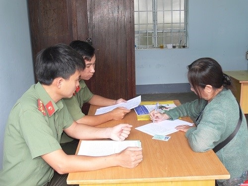 Đối tượng (nữ bên phải) tham gia tổ chức phản động, bị lực lượng Công an tỉnh Đắk Lắk triệu tập làm việc (Ảnh: CA Đắk Lắk)