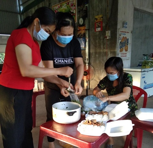 Các chị em hội Phụ nữ xã Ea Wer, huyện Buôn Đôn trực tiếp nấu cơm và đưa đến cho lực lượng trực chốt chống dịch