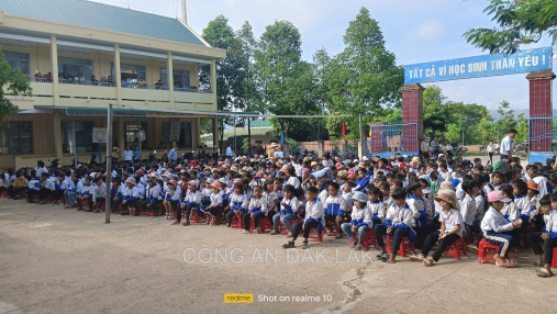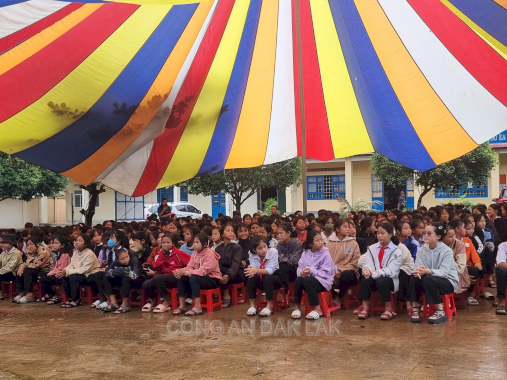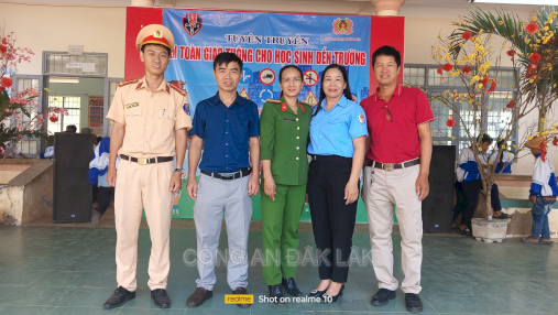 Công an xã Ea Yiêng phối hợp cùng Đội cảnh sát giao thông, Ban giám hiệu các trường học trên địa bàn xã tổ chức tuyên truyền Luật Giao thông đường bộ cho học sinh và giáo viên.
