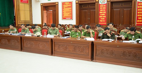 Đồng chí Thiếu tướng Lê Vinh Quy, Ủy viên Ban Thường vụ Tỉnh ủy, Bí thư Đảng ủy, Giám đốc Công an tỉnh chủ trì Hội thảo